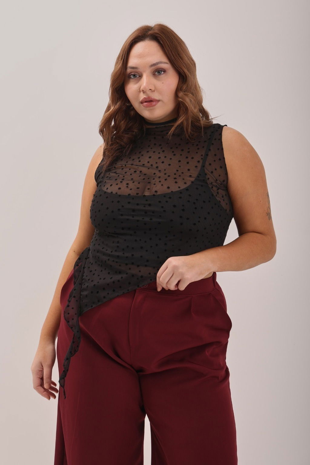Top transparente bordado
