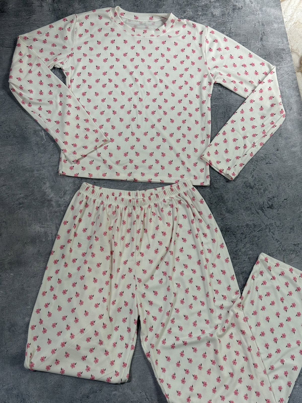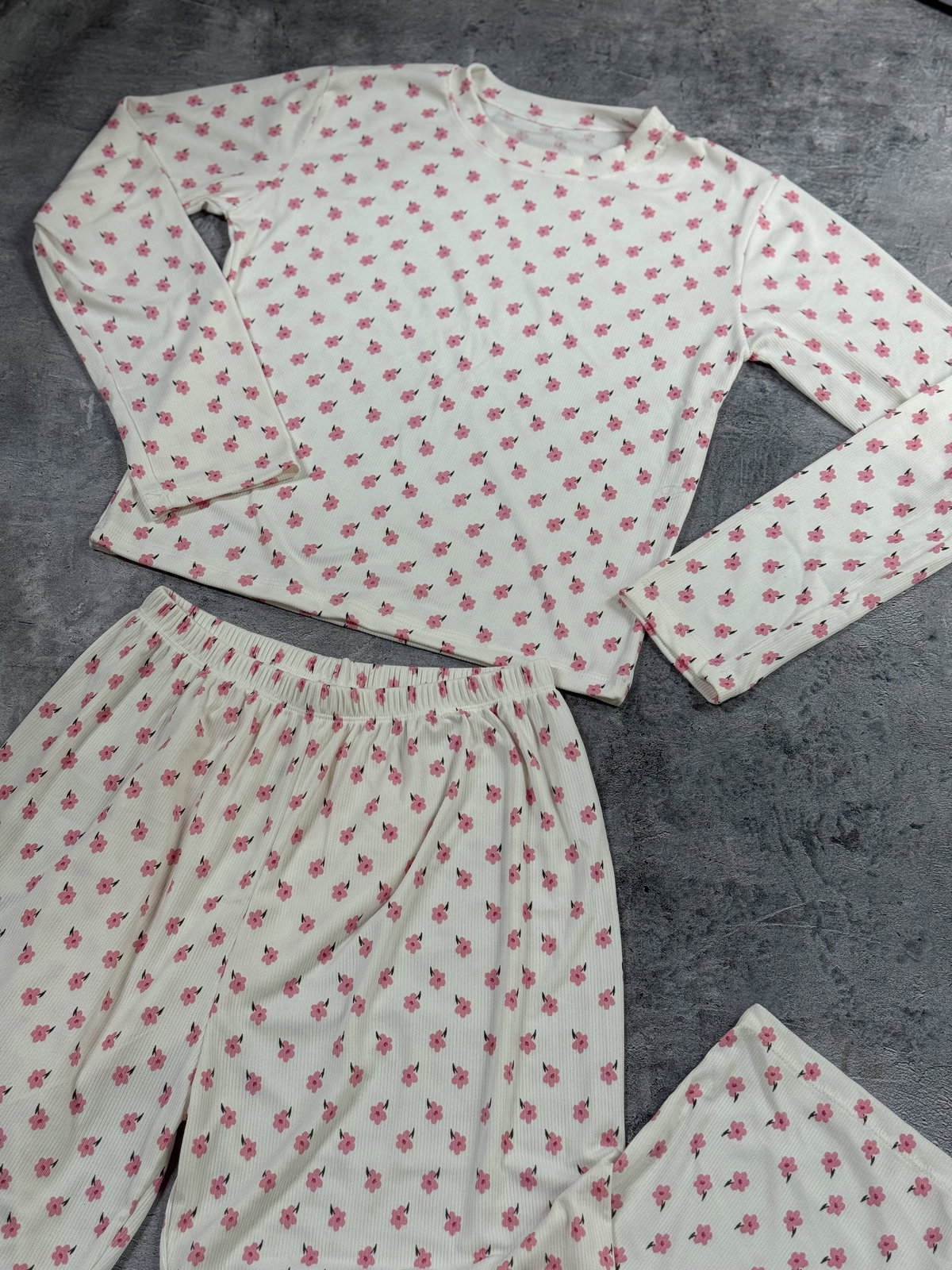 Pijama largo morley blanco/florcitas rosa