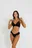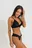 Bikini en triángulo, con base triangular y voladitos( taza desmontable). Less en V, con voladitos laterales.